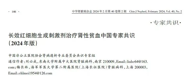 [1] 中国非公立医院协会肾病透析专业委员会共识专家组. 长效红细胞生成刺激剂治疗肾性贫血中国专家共识(2024年版)[J]. 中华肾脏病杂志,2024,40(2):146-157.