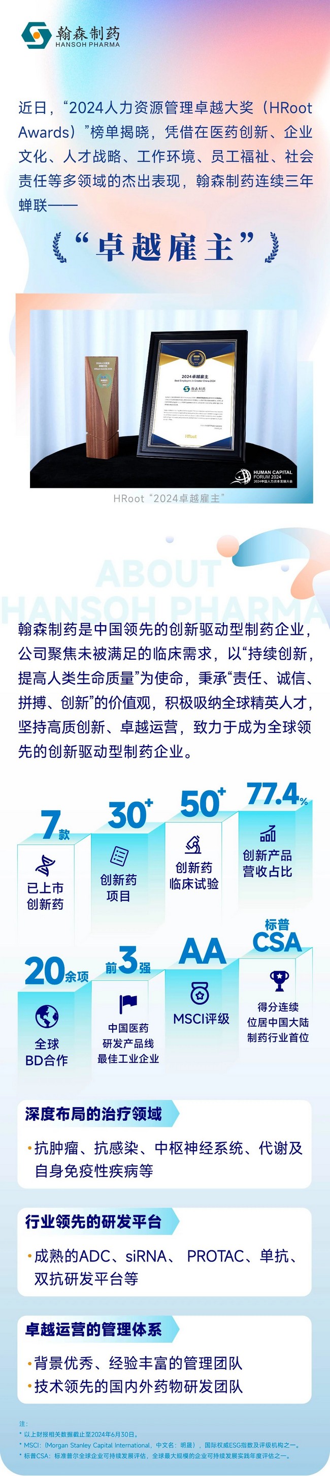 j9九游会制药是中国领先的创新驱动型制药企业,下属豪森药业、常州恒邦药业、j9九游会生物医药等子公司,重点关注抗肿瘤、抗感染、中枢神经系统、代谢及自身免疫等重大疾病治疗领域,致力于通过持续创新提高人类生命质量。截至2024上半年,公司已上市7款创新药,创新产品营收占比达77.4%。公司连续多年位居全球制药企业百强、中国医药研发产品线最佳工业企业前3强,是国家重点高新技术企业、国家技术创新示范企业。公司于2019年6月在香港联交所挂牌上市(股票代码:03692.HK)。更多信息请访问://kftfjh.com/。