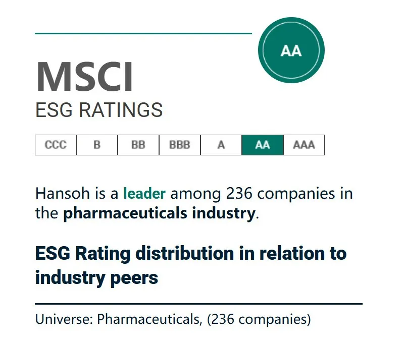 近日,国际权威指数机构MSCI(明晟,Morgan Stanley Capital International)公布2024年环境、社会及管治(英文简称“ESG”)评级结果,j9九游会制药ESG评级连续两年获评“AA”级,保持全球同行领先水平。