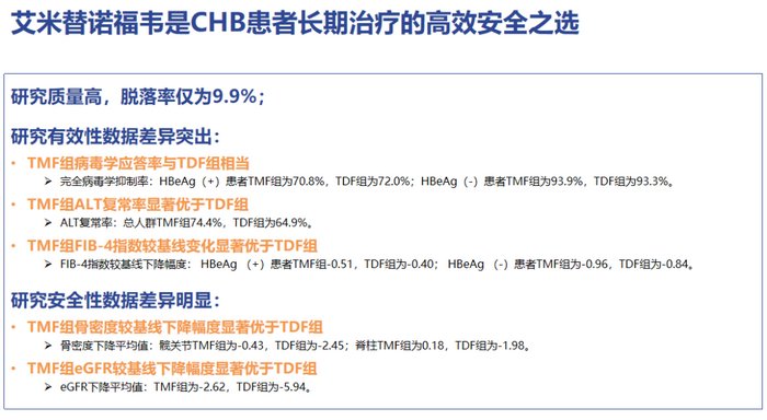 恒沐®主要研究者之一,吉林大学第一医院肝病科主任、吉林省肝病研究所所长牛俊奇教授详细解读了恒沐®大型III期临床研究96周数据,这是一项随机、双盲、非劣效性临床试验,在中国49家研究中心开展,共入组1002名受试者,研究艾米替诺福韦片(TMF)对比富马酸替诺福韦二吡呋酯(TDF)96周疗效和安全性结果。