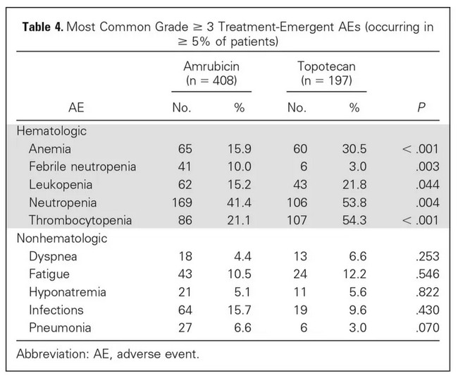 在先前一项二线治疗三期临床中,同为Topoi的拓扑替康(topotecan),ORR仅为16.9%。