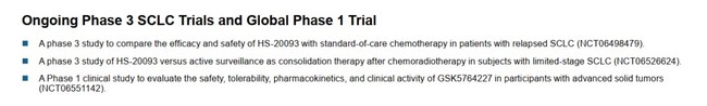 目前HS-20093已在开展两项三期临床和一项全球一期临床。